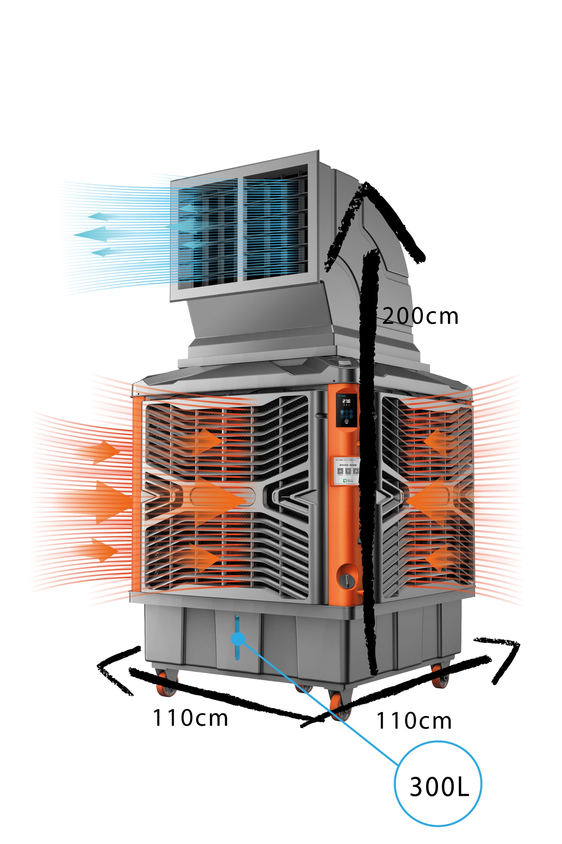 Der GCT Y30 ist das ideale Verdunstungskühlgerät für alle, die eine effektive und umweltfreundliche Lösung für die Kühlung großer Innen- und Außenbereiche suchen. Mit einem maximalen Luftstrom von 23.000 m³/h bietet der GCT Y30 die nötige Leistung, um auch in großen, offenen oder dicht besiedelten Bereichen wie Eventlocations, Industriebauten oder Sporteinrichtungen eine konstante Kühlung bereitzustellen.